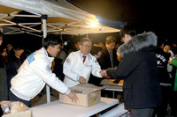 충북대 윤여표 총장과 이희숙 학생처장, 학생회장 등이 7일 저녁 7시부터 충북대 중앙도서관 앞에서 기말고사를 준비하는 학생들을 응원하기 위해 ‘열공야식’을 제공했다.이날 이 학교는 미리 마련한 김밥과 국을 1000여명의 학생들에게 직접 나눠주며 기말고사를 준비하는 학생