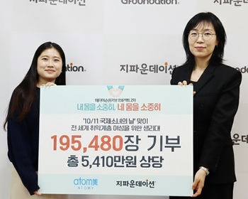애터미가 세계 소녀의 날을 기념해 국내외 취약계층 여성을 위한 생리대 기부 캠페인을 통해 5410만 원 상당의 '애터미 순한데이' 생리대 19만5480장을 기부했다고 16일 밝혔다.이번 기부는 국제개발협력 NGO 지파운데이션과 함께한 '내 몸을 소중히, 네 몸을 소중히