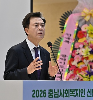 김태흠 충남도지사는 13일 아산 온양제일호텔에서 열린 '2026년 충남 사회복지인 신년교례회'에 참석해 사각지대 없는 복지 실현을 위한 도정 방향을 밝혔다.김 지사는 "고령화와 양극화, 기후위기 등으로 사회복지의 중요성이 커지고 있다"며 "보다 두텁고 촘촘한 복지 안전