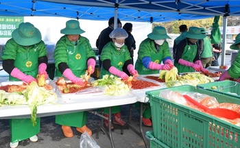 충남 논산시는 논산시새마을회(회장 정문순)가 11일부터 13일까지 ‘사랑의 김장 담그기’ 행사를 열고 관내 독거노인·취약계층 1045세대에 7000여 포기의 김치를 전달했다고 14일 밝혔다.이번 행사에는 15개 읍면동 새마을부녀회와 지도자협의회 회원 400여 명이 참여