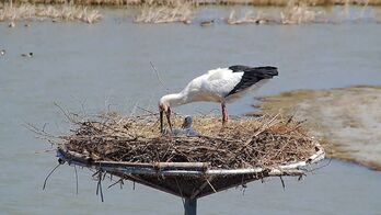 충남 서산시 서산버드랜드에서 번식 중인 황새 부부가 올해 새끼 5마리를 키우고 있는 것으로 확인됐다.시는 지난 19일 둥지 CCTV 영상을 통해 새끼 황새 5마리를 확인했다고 밝혔다. 이들 황새는 야생 수컷과 방사 개체 암컷이 짝을 이룬 개체로, 2023년부터