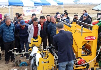 마늘 주산지인 충남 태안군이 농촌 일손 부족 해소와 농가 소득 증대를 위해 마늘 파종 기계화 보급에 나섰다.군은 지난 16일 태안읍 상옥리 한 농가에서 마늘 재배 농업인과 관계자 등 100여 명이 참석한 가운데 ‘태안마늘 일괄 파종 기계화 연시회’를 열고 기계 작동 원