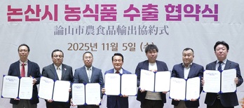 충남 논산시가 일본 오사카 대형 유통업체와 손잡고 농식품 수출시장 확대에 나섰다.논산시(시장 백성현)는 5일 일본 오사카 호텔 로얄클래식에서 현지 유통기업 6곳과 총 70만 달러(약 10억 원) 규모의 수출 협약을 체결했다고 6일 밝혔다. 이날 협약에는 백성현