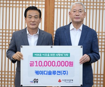 충남 논산시 양촌면에 위치한 케이디솔루션(대표 유희진)이 활발한 사회공헌 활동으로 지역 대표 상생기업으로 자리 잡고 있다.8일 논산시에 따르면 케이디솔루션은 지난해 8월 양촌면 주민들을 위한 재난구호 성금 1000만 원을 기탁했다. 같은 해 12월에는 '희망