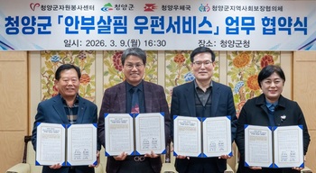 청양군 '안부살핌 우편서비스' 추진… 4자 업무협약 체결