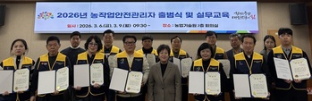 충남도 농업기술원이 농촌 현장의 안전 사각지대 해소와 농작업 재해 예방을 위해 농작업안전관리자를 본격 투입한다.도 농업기술원은 6일 기술원 회의실에서 천안·아산·논산·금산·부여·태안 등 6개 시군에서 선발된 안전관리자 12명을 위촉하고 '2026년 농작업 안전관리자 출