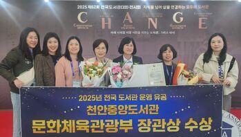 천안시 중앙도서관이 제62회 전국도서관대회에서 ‘도서관 운영 유공’ 우수도서관으로 선정돼 문화체육관광부 장관상을 수상했다고 23일 밝혔다.문화체육관광부는 매년 전국의 공공·학교·전문·작은도서관 등 가운데 운영 및 서비스 발전에 기여한 우수도서관을 선정해 포상하고 있다.