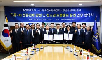 순천향대학교(총장 송병국)는 (사)한국청소년육성회(총재 김창룡), 충남콘텐츠진흥원(원장 김곡미)과 ‘드론·AI 전문인재 양성 및 청소년 드론캠프 운영을 위한 업무협약’을 체결했다고 17일 밝혔다.이번 협약을 통해 세 기관은 청소년 대상 드론·AI 융합교육 프로그램을 공