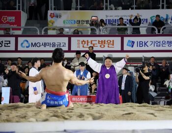 충남 태안군은 설 연휴를 맞아 개최한 '위더스제약 2026 태안설날장사씨름대회'가 1만2천여 명의 관람객을 모으며 성황리에 마무리됐다고 20일 밝혔다.지난 12일부터 18일까지 열린 이번 대회에는 전국 32개 팀 294명의 선수가 참가해 열띤 승부를 펼쳤다.