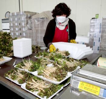 충남 태안군은 농산물 산지유통센터(APC)가 겨울철 별미인 태안산 달래와 냉이 출하가 한창이라고 11일 밝혔다.갯바람을 맞고 자라 맛과 향이 뛰어난 '태안산 달래·냉이'는 지난해 12월부터 생산을 시작해 오는 3월까지 전국으로 유통된다.센터에서 세척·포장 과정을 거친