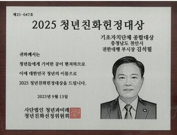 천안시, 청년친화헌정대상 2년 연속 종합대상 수상