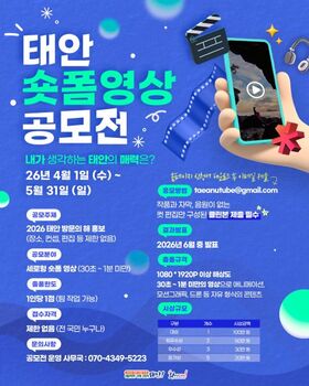 충남 태안군은 ‘2026 태안 방문의 해’를 맞아 관광 홍보 숏폼영상 공모전을 열고 4월 1일부터 5월 31일까지 상반기 참가자를 모집한다고 27일 밝혔다.이번 공모전은 SNS 중심의 콘텐츠 트렌드를 반영해 기획됐으며, 국민 누구나 참여할 수 있다. 참가자는