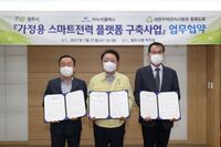 충북 청주시가 21일 시청 직지실에서 한범덕 청주시장, ㈜누리플렉스 김영덕 대표이사, 대한주택관리사협회 충북도회 신근철 회장과 아파트 단지의 기계식(전자식) 전기 계량기(한전 계량기 제외)를 지능형으로 무상 교체하는 ‘가정용 스마트전력 플랫폼 구축사업’ 업무협약을 가졌