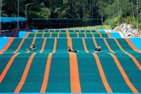 충북 최대 유일 관광단지 증평 에듀팜 특구에 사계절 썰매장이 들어섰다.22일 증평군에 따르면 ㈜블랙스톤에듀팜리조트가 17억 원을 들여 ‘튜비 슬라이딩’을 이날 개장했다. 튜비 슬라이딩은 115m의 슬로프를 튜브를 타고 내려오는 하강 체험시설로 루지체험장 옆에