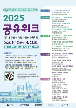 충북 진천군은 오는 17일부터 21일까지 충북혁신도시 복합혁신센터와 공유평생학습관 일원에서 개관 1주년 기념 이색이벤트로 ‘공유 위크(Share Week)’를 개최한다고 11일 밝혔다.이번 행사는 행정안전부 주관 ‘지자체 간 협력 뉴딜사업(2022~2025)’의 성과를