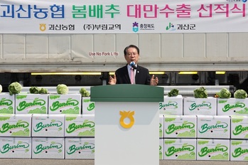 충북 괴산군(군수 송인헌)은 2025년 한 해 동안 괴산배추 937톤(50컨테이너)이 대만 수출길에 오른다고 29일 밝혔다.이날 괴산농협배추작목반은 괴산읍 농협 경제종합지원센터에서 괴산배추 대만 수출 선적식을 열고 본격적인 수출 개시에 나섰다.이날 선적식에는 송인헌 군