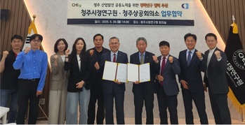충북 청주시정연구원(원장 원광희)은 26일 청주상공회의소(회장 차태환)와 지역발전 선도 및 혁신기반 조성을 위한 업무 협약식을 개최했다. 청주 발전을 위한 공동연구 및 협력 체계를 구축해 기업과 청주 시민의 상생발전에 기여하고자 마련된 이번 협약식에는 원광희