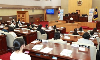 충북도의회(의장 이양섭)는 22일 오창초등학교 학생 27명을 대상으로 본회의장에서 제119회 청소년 의회교실을 운영했다고 밝혔다.이 교실은 학생들이 1일 도의원이 돼 의회 운영에 대한 이해를 높이는 교육 프로그램으로, 무기명 투표를 통한 의장 선출, 안건 심의·의결,