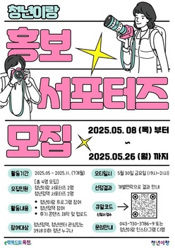충북 옥천군은 20일 청년의 자율적 참여 확대와 정책 접근성 제고를 위해 청년센터 ‘청년이랑’을 중심으로 2025년 청년 참여 프로그램을 본격 운영하며 이에 따라 참여자 모집에 들어갔다고 밝혔다.이번에 운영되는 주요 프로그램은 △청년이 직접 콘텐츠를 제작하는 ‘홍보 서