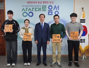 충북 음성군은 19일 군수 집무실에서 음성군 청년센터(청년대로)에서 추진한 ‘청년창업 지원사업’에 참여해 사업화에 성공한 청년 창업가에게 창업 결실을 응원하기 위한 맞춤형 제작 현판을 전달했다고 밝혔다. ‘청년창업 지원사업’은 자금 확보가 어려운 청년 창업가들