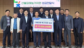 충북새농민회(회장 이용석)는 19일 농협 경북본부에서 산불 피해 복구를 위한 따뜻한 나눔에 동참했다고 밝혔다.충북농협에 따르면 충북새농민회는 지난 초대형 산불로 피해를 입은 농업인을 돕기 위해 성금 1000만 원을 모금해 경북농협에 전달했다.이날 농협 경북본부에서 가진