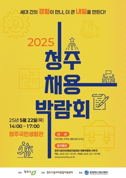 충북 청주시가 주최하고 청주시일자리종합지원센터가 주관하는 ‘2025 청주채용박람회’가 오는 22일 오후 2시 서원구 올림픽기념국민생활관에서 개최된다고 3일 밝혔다.이번 채용박람회는 ‘세대 간의 경험이 만나, 더 큰 내일을 만든다’라는 슬로건 아래, 채용을 희망하는 지역