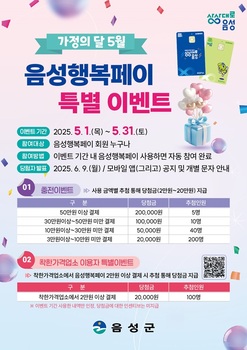 음성군, 5월 음성행복페이 구매한도 70만원으로 ‘확대’