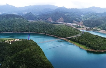 충북 옥천군이 24일 ‘장계지구 생태탐방길 조성사업’을 시작한다고 밝혔다.이 사업은 2022년부터 총사업비 138억원의 사업비를 투자해 옥천군 안내면 장계리 및 인포리 산악지형(달돋이산)에 길이 411m, 폭2m의 교량(보행현수교) 형식의 출렁다리를 설치하는 생태탐방길