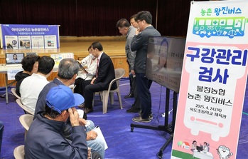 충북 괴산군(군수 송인헌)은 24일 목도초등학교 체육관에서 농촌 주민을 대상으로 원스톱 의료서비스를 제공하는 ‘농촌 왕진버스’ 사업을 운영했다고 24일 밝혔다.‘농촌 왕진버스’는 의료기관 접근이 어려운 농촌지역 주민들을 위해 해당 지역을 직접 찾아가 진료 및 상담을 제