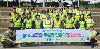 충북 청주상공회의소(회장 차태환)는 24일 무심천 체육공원 일원에서 ‘맑고 깨끗한 청주만들기 1사 1하천 사랑운동’을 전개했다고 밝혔다.‘1사 1하천 사랑운동’은 생태계의 건강성을 회복하고 하천 중요성의 범시민적 공감대를 형성하기 위해 청주시에서 주관하는 하천 정화 캠