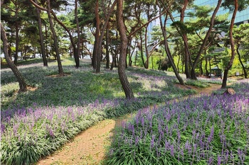 충북 청주시는 흥덕구 복대동 솔밭근린공원 내 소나무숲에 지난 2023년부터 올해까지 총 36만본의 맥문동을 식재해 도심 속 대표 힐링 명소를 조성했다고 23일 밝혔다.이번 사업은 청주시와 SK하이닉스가 체결한 ‘1사1공원 행복가꾸길’ 협약의 일환으로 추진됐다.시는 공원