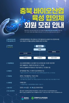 충북도가 지역 바이오산업 성장의 핵심 거버넌스 역할을 할 ‘충북 바이오산업 육성 협의체’ 회원을 모집한다. 협의체는 산학연병(産學硏病) 협력체계를 바탕으로 지역 바이오산업의 현안 대응력과 경쟁력을 높이기 위한 것으로, 충북을 기반으로 활동하는 관련 기업 및 개