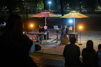 증평 보강천미루나무숲에서 올해 첫 버스킹 공연 열려