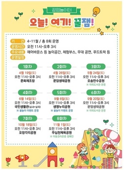 충북 청주시가 올해도 아동과 가족이 함께 즐길 수 있는 꿀잼공간인 팝업 놀이터 ‘오늘! 여기! 꿀잼!’을 선보인다고 14일 밝혔다.팝업 놀이터는 이름 그대로 일시적으로 운영되는 이동식 놀이터다. 가까운 공원이나 공터 등에 펼쳐져 시간과 장소의 제약 없이 자유롭게 놀이를