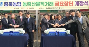 충북농협(총괄본부장 이용선)은 농가소득 증대와 농축산물 유통 활성화를 위해 4일 충북본부 주차장에서 ‘2025년 농축산물 직거래 금요장터 개장식’을 개최했다고 밝혔다.이날 개장식에는 이용선 충북농협 총괄본부장, 이명섭 농협중앙회 이사조합장, 반주현 충북도청 농정국장,