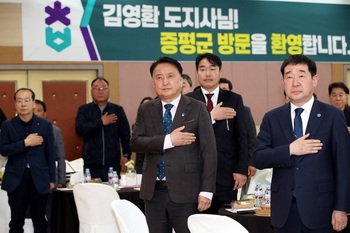 김영환 충북도지사는 31일 증평군을 방문해 일하는 밥퍼 사업장인 송산휴먼시아2단지 경로당과 행복돌봄센터 건립사업 예정지를 방문하고 증평군청을 찾아 증평군민 150여 명이 모인 가운데 도정 운영방향을 설명하고 주민과의 대화시간을 보냈다.먼저 김영환 지사는 충북도가 최초로