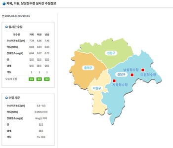 청주시 “수돗물 탁도 등 실시간 수질정보 확인하세요”