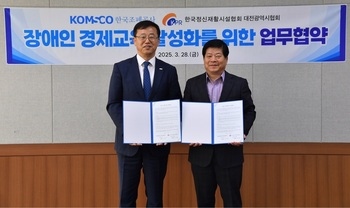 한국조폐공사(사장 성창훈, www.komsco.com)는 28일 본사 회의실에서 한국정신재활시설협회 산하 대전광역시협회(협회장 이창섭)와 장애인 경제교육 활성화를 위한 업무협약을 체결했다. 이번 협약을 통해 두 기관은 장애인의 역량강화를 위한 경제 교육의 발전