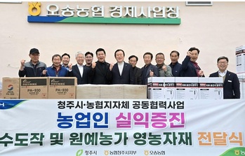 충북 청주 오송농협(조합장 박광순)은 지역 농가 영농비 절감을 위해 청주시, 농협중앙회와 협력해 주요 영농자재를 반값에 지원한다고 28일 밝혔다. 오송농협은 지난 27일 본점 경제사업장에서 박노학 청주시의원, 이장환 농협 청주시지부장 등이 참석한 가운데 영농자