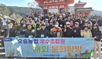 충북 청주 오송농협이 우수조합원 40명을 선발해 일본 오사카·교토·나라·고베 등지에서 전통문화탐방을 진행하며 조합원 복지 향상에 앞장섰다.오송농협은 이번 탐방이 지난 19일부터 3일간 진행됐으며, 조합원들의 호응과 기대가 큰 신규 지도사업이라고 23일 밝혔다.탐방 지역