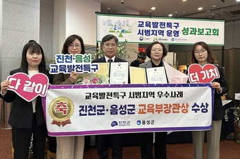 충북 진천군이 K-스마트 교육에 이어 교육발전특구 사업이 좋은 평가를 받으며 명품 교육도시로 발돋움하고 있다고 24일 밝혔다.군은 교육부가 주관한 ‘교육발전특구 시범지역 우수사례’ 공모에서 교육부장관상을 수상했다.교육발전특구 시범지역으로 선정된 56개 특구 중 유형별로