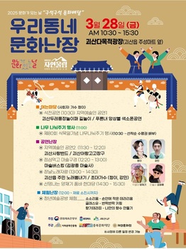 충북 괴산군(군수 송인헌)은 문화체육관광부와 지역문화진흥원이 주관하는 2025년 ‘문화가 있는 날 구석구석 문화배달’ 광역 공모사업에 충북도(충북문화재단)와 함께 2년 연속 선정됐다고 24일 밝혔다. 문화배달 공모사업은 문화소외지역과 혁신도시 등 문화환경 취약