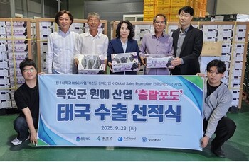 청주대학교 RISE사업단이 옥천군에서 재배한 신품종 ‘충랑포도’를 태국으로 수출하는 데 성공하며 충북 농업의 해외 진출 가능성을 입증했다.청주대학교(총장 김윤배) RISE사업단은 24일 충북농업기술원이 개발하고 옥천군에서 재배된 ‘충랑포도’가 태국으로 첫 수출길에 올랐