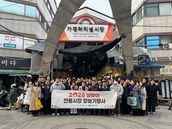 충븍기업진흥원은 설 명절을 앞두고 10일 전통시장을 찾아 장보기 행사를 진행하며 지역경제 응원에 나섰다.충북기업진흥원(원장 신형근)은 물가 상승과 내수 침체로 위축된 소비 심리를 회복하고 전통시장과 지역 상권에 활력을 불어넣기 위해 '설맞이 전통시장 장보기 행사'를 마