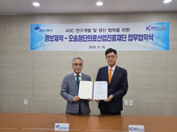 오송첨단의료산업진흥재단(KBIOHealth)과 경보제약이 차세대 바이오의약품 분야에서 전주기적 협력 체계를 구축하고 공동 연구개발에 나선다. 양 기관은 이번 협약을 통해 ADC를 비롯한 차세대 모달리티 연구·생산·기술 자문을 함께 수행하며 국내 바이오헬스 산업