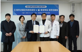 충북 청주산업단지관리공단과 충청북도청주의료원은 24일 오후 청주의료원내에서 ‘청주산업단지 입주업체 임직원 및 가족의 건강증진 및 복지향상을 위한 업무협약’을 체결했다고 밝혔다. 이번 협약으로 청주의료원은 청주산업단지 입주업체 임직원 및 가족을 대상으로