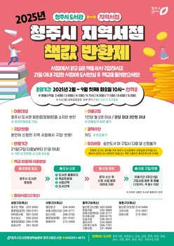 충북 청주시는 24일 시민들의 독서활동을 촉진하고 지역서점 진흥을 유도하기 위해 ‘지역서점 책값반환제’를 2월부터 시행한다고 밝혔다.책값반환제는 사업에 참여하는 지역서점 22곳에서 청주시 도서관 회원이 책을 구입하고 21일(3주) 이내에 구입한 서점에 반납하면, 회원에