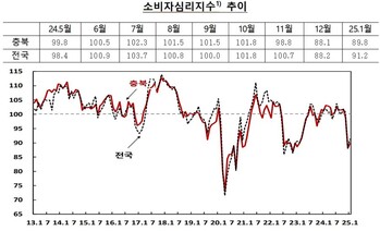 1월 충북 소비자심리지수 ‘소폭 상승’…전월 比 ‘1.7포인트’ 상승