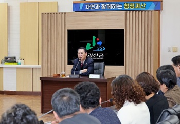 충북 괴산군은 6일 군청에서 열린 을사년 새해 첫 간부회의를 주재하고 주민 민생안정을 위한 흔들림 없는 군정을 추진해 나갈 것을 약속했다고 밝혔다. 송 군수는 경기침체, 기후위기, 불안정한 국내외 정세 , 세수감소에 따라 2025년도 어려움이 예상되지만 민선8