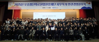 충북 오송첨단의료산업진흥재단(이사장 이명수, 이하‘KBIOHealth’)은 6일 2025년 새해를 맞아 시무식과 함께 재단의 인권경영의지를 반영한 ‘2025년 KBIOHealth 인권경영선포식’을 노사 합동으로 열었다고 밝혔다.이번 ‘인권경영선포식’은 2018년 최초